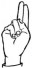 На ћирилици написано ЕМА ПЕЛАГИЋ састоји се из 10 слова [?]. Исписано ћириличном једноручном азбуком за глувонеме: